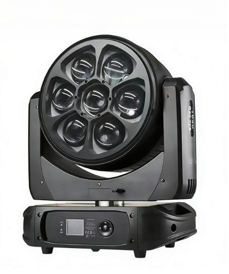 পেশাদার-গ্রেডের এলইডি ওয়াশ মুভিং হেড লাইট যাতে ৭টি উচ্চ-ক্ষমতার RGBW এলইডি রয়েছে এবং উন্নত জুম ক্ষমতা ও ব্যাপক নিয়ন্ত্রণ বিকল্প সহ স্টেজ লাইটিং অ্যাপ্লিকেশনের জন্য তৈরি।