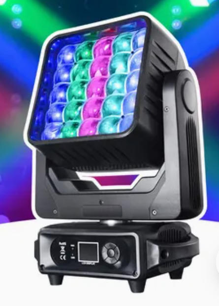 পেশাদার এলইডি ম্যাট্রিক্স মুভিং হেড লাইট যাতে ২৫×১৫W RGBW 4-in-1 এলইডি রয়েছে, যা ডায়নামিক স্টেজ এবং ডান্স লাইটিং এফেক্টের জন্য শেকিং হেড, ডাইং এবং ফোকাসিং ফাংশনগুলিকে একত্রিত করে।